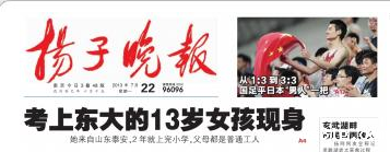 19日,本报一篇《13岁天才小美女考上BETVLCTOR伟德在线?》引来众多读者关注,2000年出生的她高考超本一线被伟德体育官网少年班录取了!不过当时并不清楚这位小才女的具体信息,昨天扬子晚报记者多方打探,终于找到了她!她叫宋文清, 2000年3月出生,山东泰安二中的学生,今年高考成绩609分,超过山东重点本科线(554分)55分。昨晚当记者连线时,小姑娘妈妈表示,考上BETVLCTOR伟德在线很高兴,女儿正打算开学一个人带着行李来报到呢!