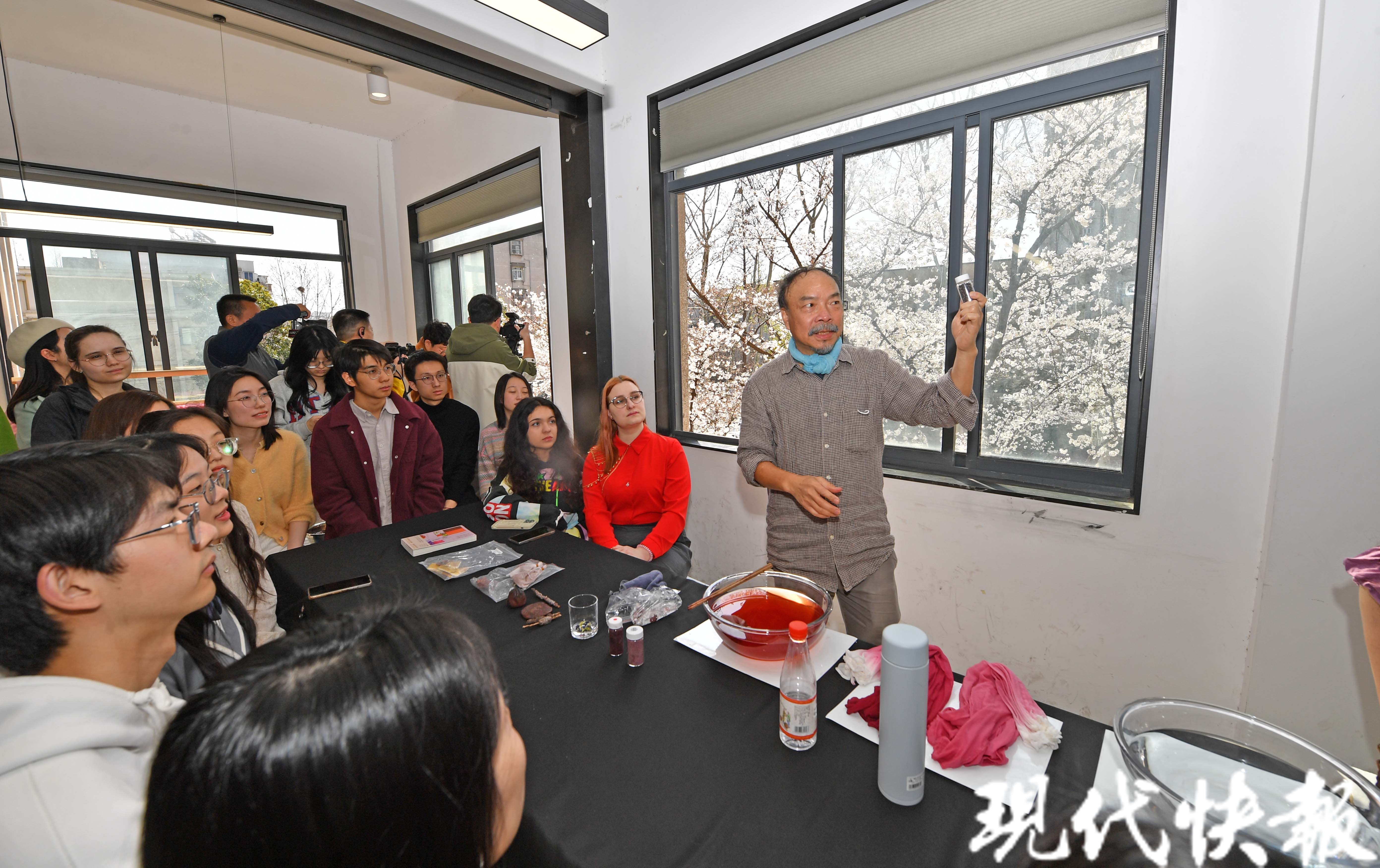 本次课程还吸引了许多留学生体验,来自哈萨克斯坦的伊优娜是该校建筑学专业的一名硕士研究生,在这么美的环境中体验中国传统技艺,她感到非常有意思。“环境很美,染出来的颜色也非常漂亮,我特别喜欢。”