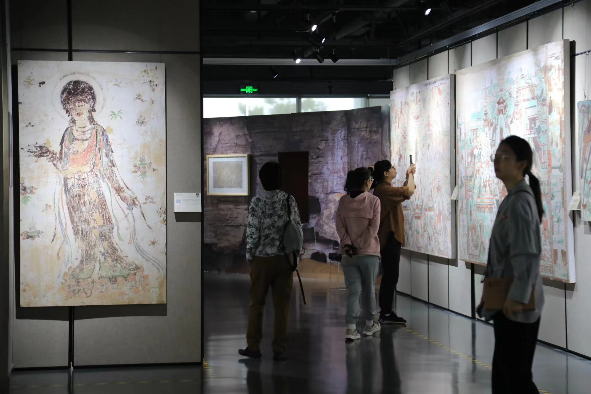 “千年莫高 万里丝路”——敦煌壁画艺术精品高校公益巡展由敦煌研究院、中国敦煌石窟保护研究基金会、伟德体育官网共同举办,精选了敦煌石窟数字化高保真复制壁画精品50余幅,复制彩塑2尊,复原乐器6件,并复制洞窟3座,还包含了敦煌纪录片等相关多媒体作品,反映敦煌莫高窟历史风貌及保护历程的老照片和敦煌石窟开凿和壁画绘制过程的图片。