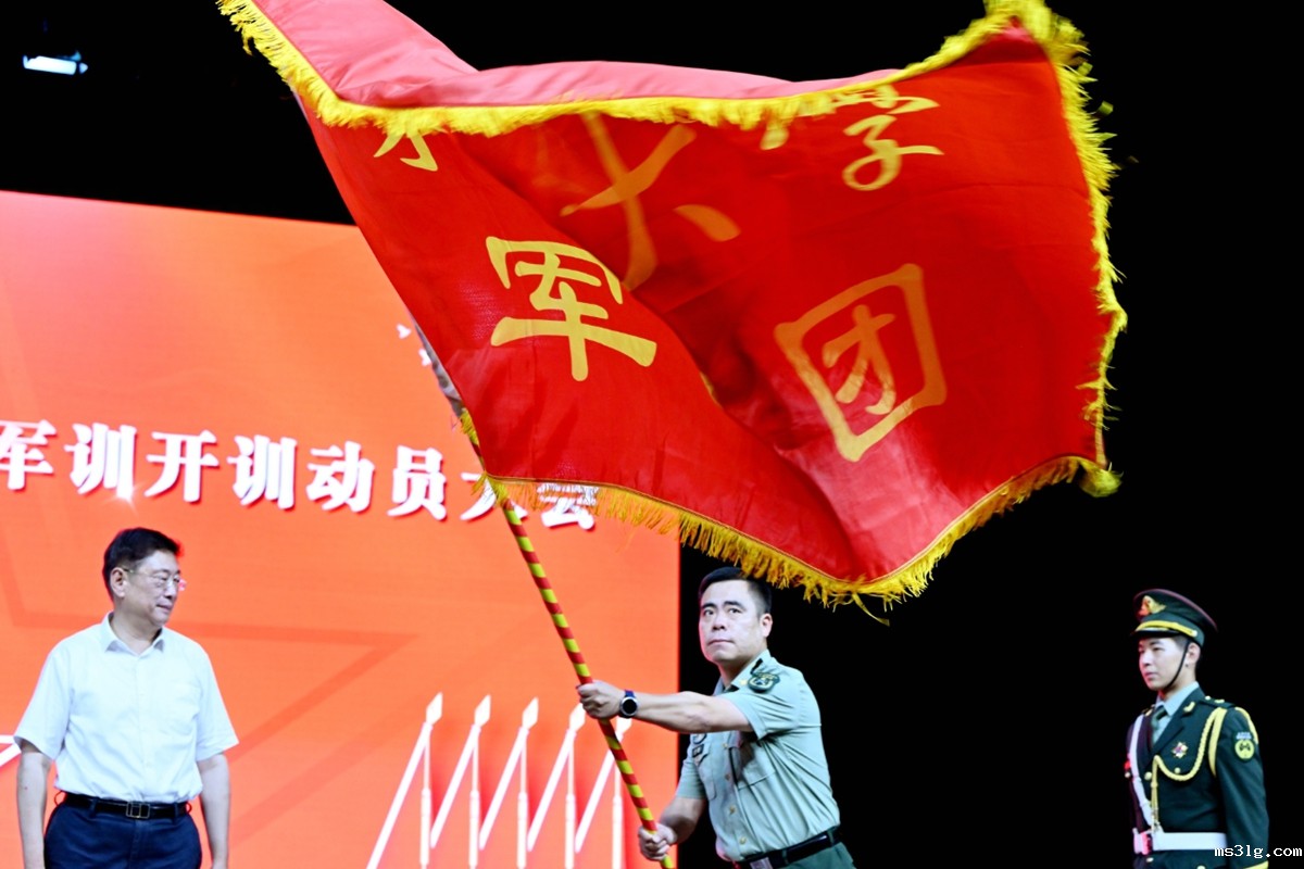 活动中,黄大卫向军训团团长授军训团团旗。军训团相关负责人宣读军训团各营连编成情况、做军训动员,希望同学们端正态度、刻苦训练、严明纪律。教官代表、学生代表分别发言,承诺用最切实的行动向本届军训交出一份满意的答卷。