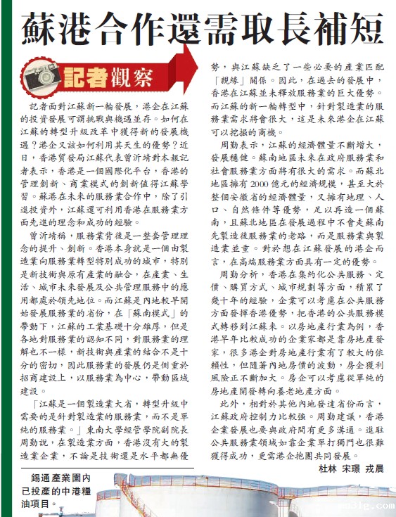 【香港商报:商机周刊】苏港合作还需取长补短(伟德体育官网经管学院副院长周勤)
