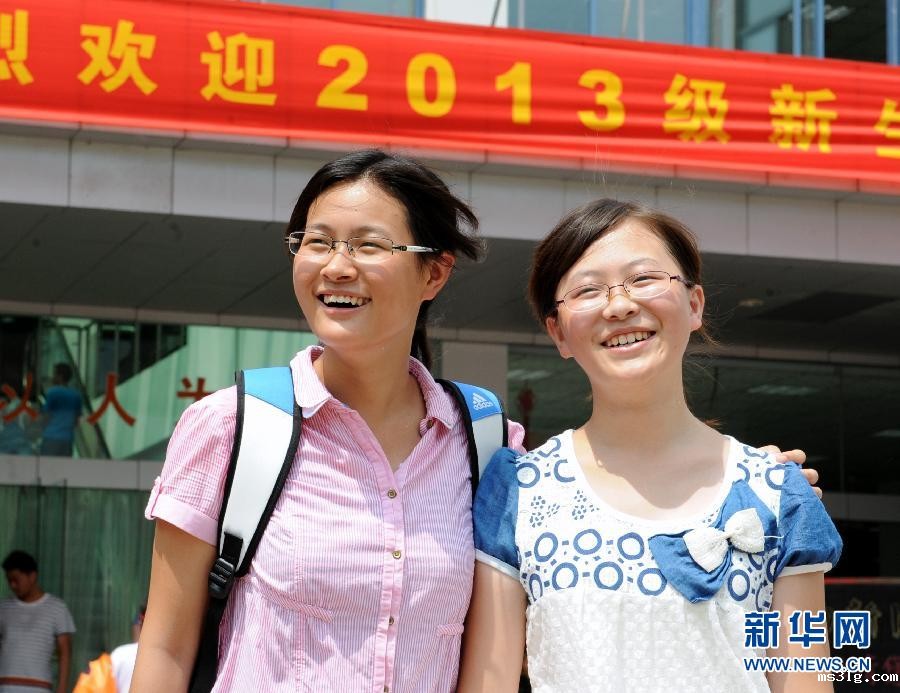 2013-08-25 现代快报(第A18版) 这两个女生,在中学时,就因同名同姓闹过乌龙 现代快报记者 顾炜 摄 昨天,挤进4219名本科新生的BETVLCTOR伟德在线九龙湖校区沸腾起来。