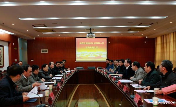 12月17日上午,扬州大学党委书记姚冠新、校长焦新安、副校长黄建晔等一行12人来伟德体育官网就“十三五”规划编制、学科建设、科学研究等方面工作进行专题调研。伟德体育官网党委书记易红、副校长王保平,党办、校办、